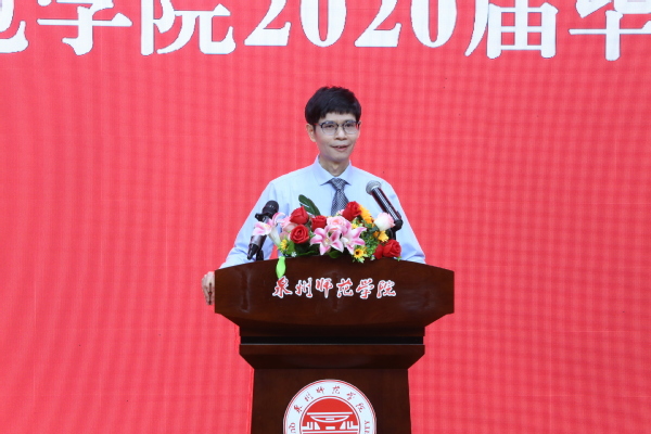 Faculty representative Chen Zhihao, a distinguished Minjiang scholar and professor of the School of Physics and Information Engineering, recalled the moment when he first came to work and study at QNU. He noted that over the past four years he and his classmates had witnessed the rapid development of the University. He hoped that the graduates could approach their work steadily, meet the challenges calmly, find their positions properly and create a world of their own.
