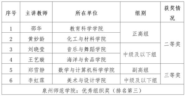 Recently, the Education Department of Fujian Province announced the list of winners of the 2nd Fujian Teaching Innovation Contest for College Teachers. QNU won four second prizes, two third prizes and the Excellent Organization Award.