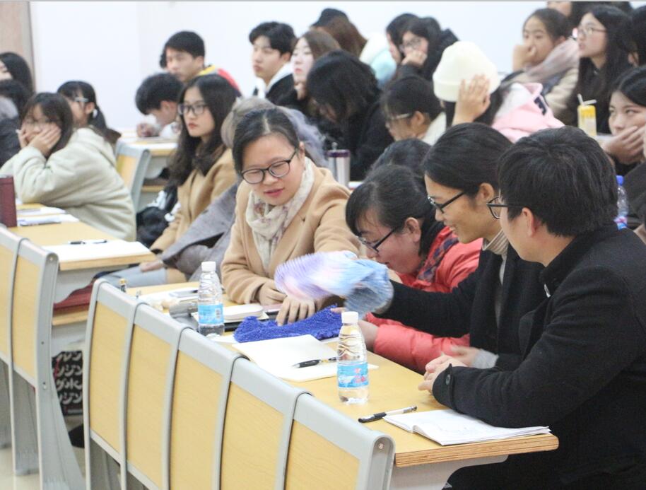 1月12日,林青玫为学院师生开设题为《从青出于蓝到纤染花语》的讲座,这也曾是林教授策划举办、以天然染色为题材的国际时尚艺术展览主题。讲座首先介绍“天然染”概念,它是最自然环保的一种染色方法,且与造型艺术的发展有着密不可分的关系。林教授解析了如何运用各种纤维材质,通过纤维艺术的创作与诠释,展示花卉自然怡人之美,以“花”元素解读大自然的设计能量。讲座上,林教授还展示了她的部分设计作品,到场师生兴致高昂。