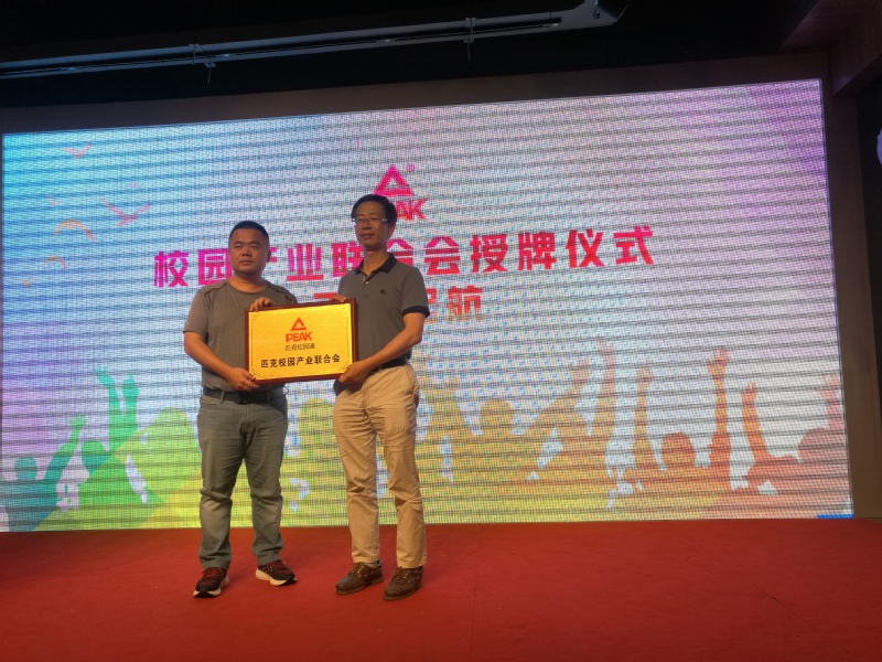 会上,总经理许志华先生代表匹克公司与学院达成合作共识,决定共同启动国际“匹克杯”校服设计大赛,由学院负责承办。许志华还邀请邱夷平一起为“匹克校园产业联合会”授牌。