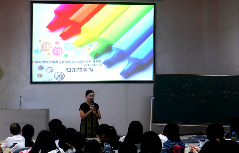 当天下午,林教授又为学院的师生带来了一场精彩的讲座,讲座主题为“钮扣世界中的故事”。讲座从钮扣的起源说起,涉及到钮扣的分类、钮扣在服装中的作用、钮扣的创意设计等。林教授的讲座内容充实、生动、有趣,获得师生的一致好评。