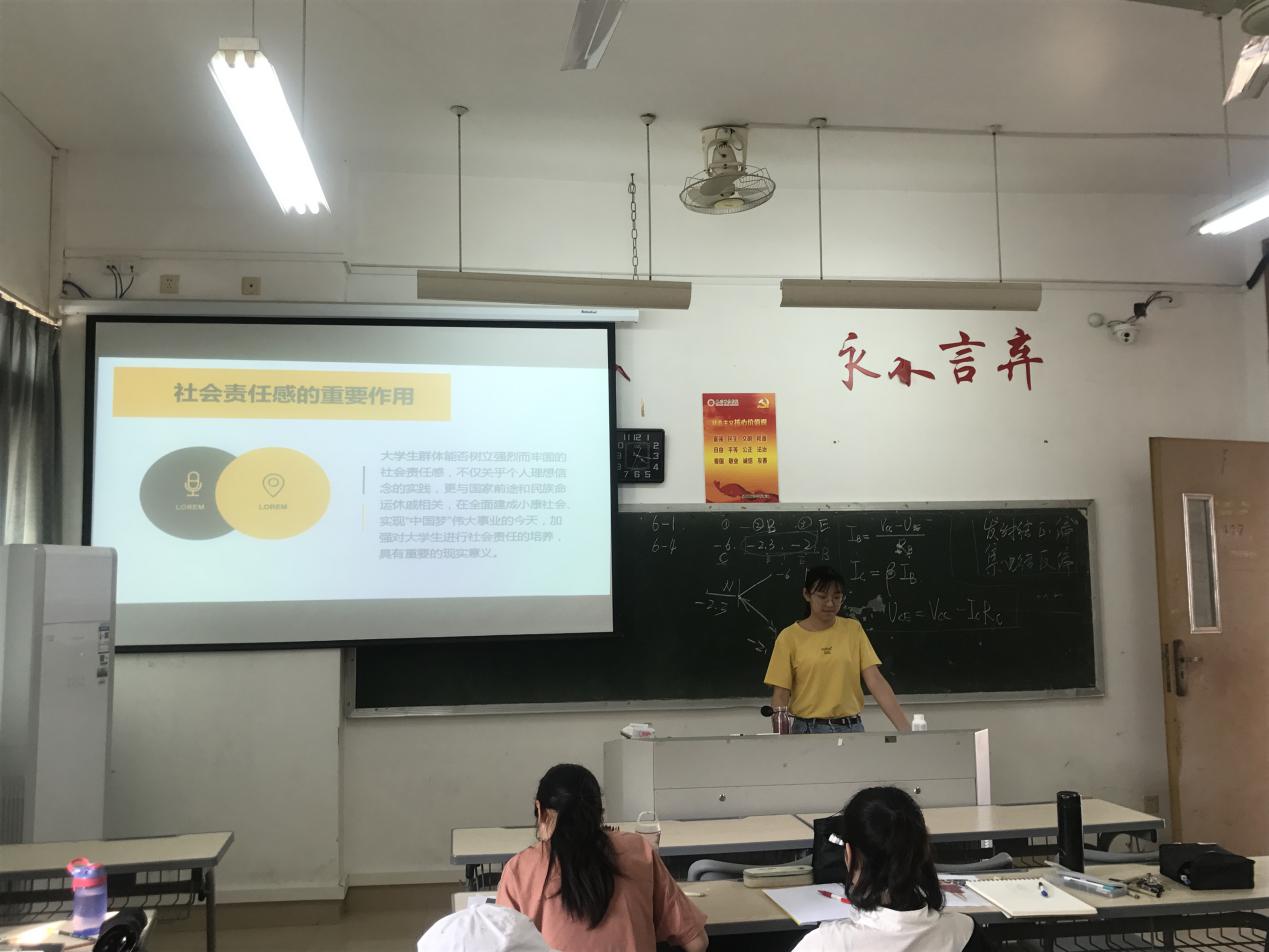 2017级服工班通过制作ppt并上台宣讲的形式,加强同学对社会责任感的认识,要求同学通过提高自身认知水平、文化修养,树立良好形象,做有担当的时代青年。2017级服设班结合学校环境、工作环境、家庭环境,对当代青年需要承担的社会责任进行思考总结,同学们一一发言,积极讨论作为一名大学生身上的使命担当。