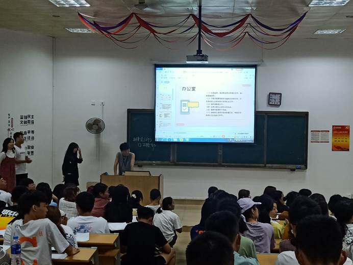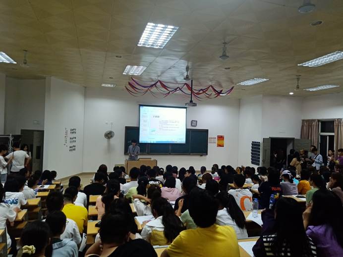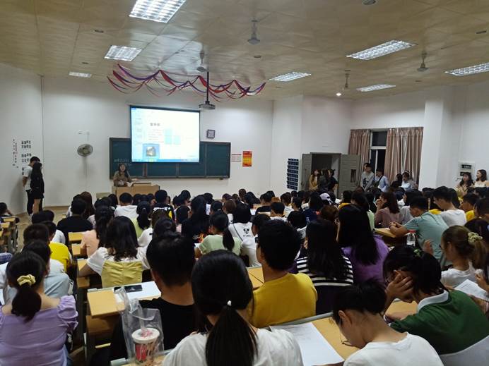 会议伊始,学生会主席吴钰洁介绍了学生会主席团成员组成和学院学生部门的架构情况。随后各部门代表依次上台,借助视频和PPT等工具,绘声绘色的向新生们介绍了各部门的特色和职能,让新生们对各个部门的情况有了全面地了解。最后,本次宣讲会在提问互动中推向高潮,圆满落幕。