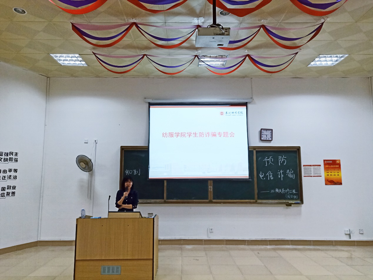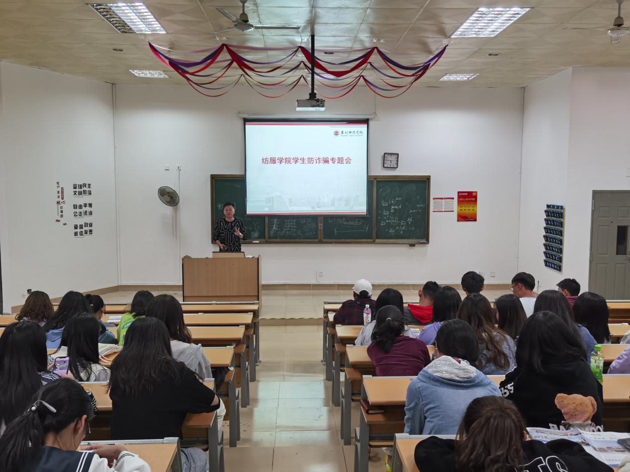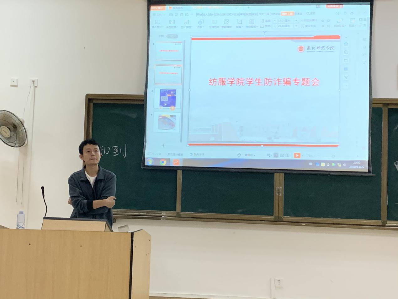 11月22日晚,我院在荣助梯教212召开学生防诈骗专题会议。学工办副主任聂莹,辅导员程钟洛、陈灿辉及全院学生参加此次会议。