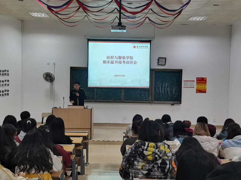 1月3日晚,我院在荣助212召开期末温书迎考动员大会,学工办副主任、团委副书记聂莹,辅导员程钟洛、陈灿辉及全院学生参加此次大会。