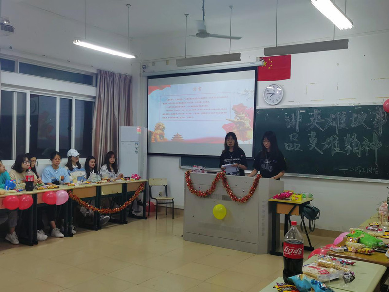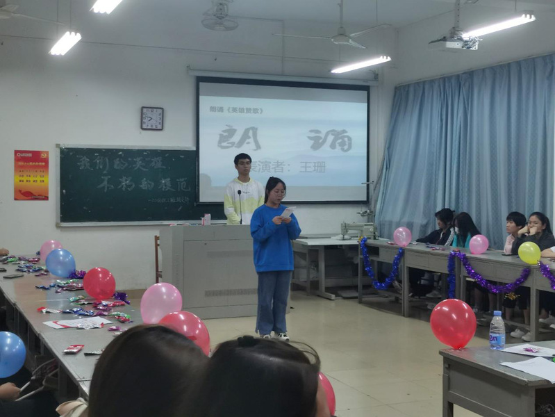 20纺织2班通过讲述党史故事、朗诵革命诗歌等形式,集中学习了革命先辈的英雄事迹和全心全意为人民服务的崇高精神,引导同学们从自身小事做起,弘扬革命先辈的英雄精神。20服工闽台班则围绕“讲英雄故事,品英雄精神”的主题,向同学们分享英雄人物的感人事迹,引导同学们深入学习英雄们的奉献精神,号召同学们不仅要珍惜先烈们用革命鲜血换来的幸福生活,更要勇于肩负起新时代青年的历史重任。