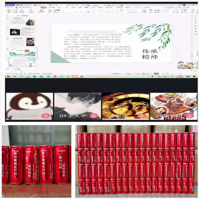在当前疫情防控阶段,学院教职工为静态管理中的学生订制了印满鼓励话语的可乐,奖励给此次活动中积极参与互动的同学,希望同学们“‘泉’力以赴”“‘疫’战到底”“静待春暖花开时”。