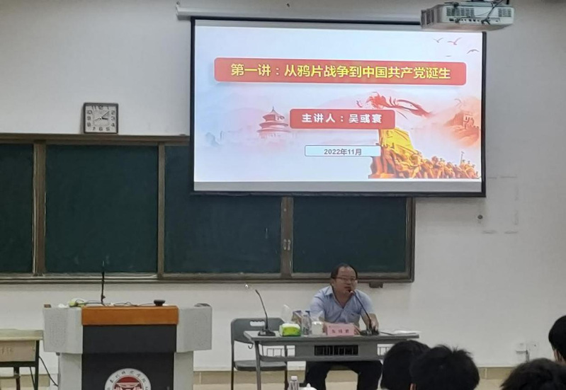 开班式结束后,泉州市数字办党支部书记吴彧寰为全体学员讲授主题为“从鸦片战争到中国共产党诞生”的专题党课。课上,吴彧寰围绕1840年第一次鸦片战争到中国共产党成立这段历史,用图文并茂的方式,讲述了近代中国面临的内忧外患,以及能人志士做出的经济、政治和革命救国的尝试,最终选择马克思列宁主义作为思想武器的历史进程。吴彧寰引导学员们从党的百年历史中涉取智慧和力量,增强使命感和责任感,以实际行动让青春在全面建设社会主义现代化国家的火热实践中绽放绚丽之花。