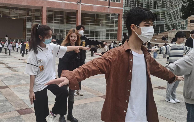 在午后的暖风中,由一百名2022级新生组成的广播操队员集中至中山广场,充分利用课余时光,在学生会文艺部的组织下有序进行广播操学习。“第十套广播体操现在开始”,随着音乐的响起,同学们整齐划一地跟着节拍,力求每个动作都做到最好,争取达到“快、静、齐”训练目标。学长学姐们将动作拆解,细致耐心进行教学。虽然训练艰苦,但心中对胜利的渴望和期待始终激励鼓舞着同学们。他们昂着头,挺着胸,展现了纺服学子健康向上、朝气蓬勃的精神风貌。
