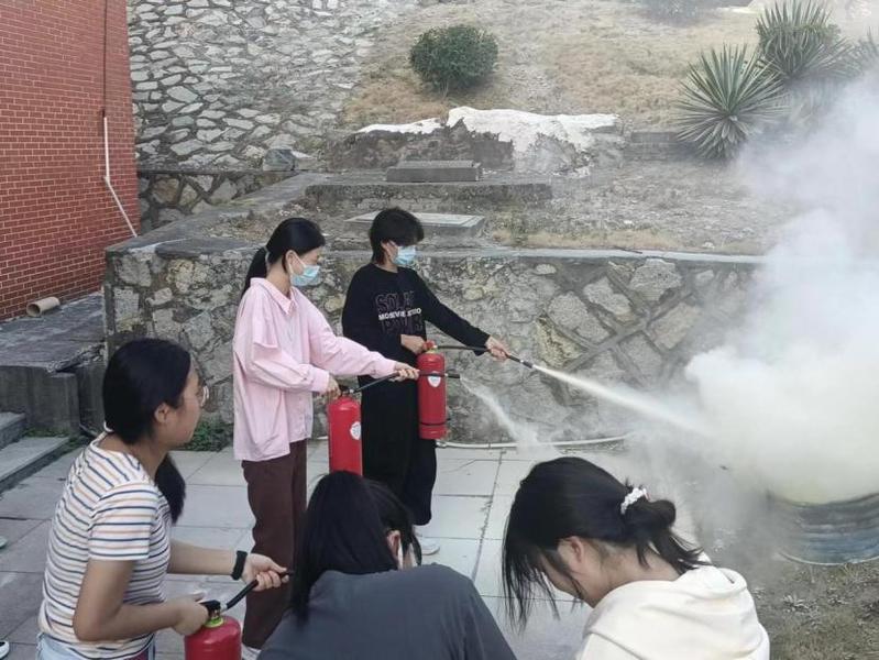 参加演练的同学们根据灭火器操作规范进行示范操作,有序体验火险扑灭处置操作。面对熊熊燃烧的火堆,每个人都沉着冷静,按照规范动作,将大火迅速扑灭。