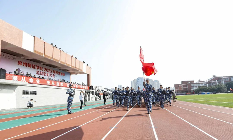 掌声与鲜花送给可爱坚毅的2022级同学们,希望在未来的大学生活中,同学们能够秉持军训顽强拼搏、艰苦奋斗的精神,继续砥砺前行。