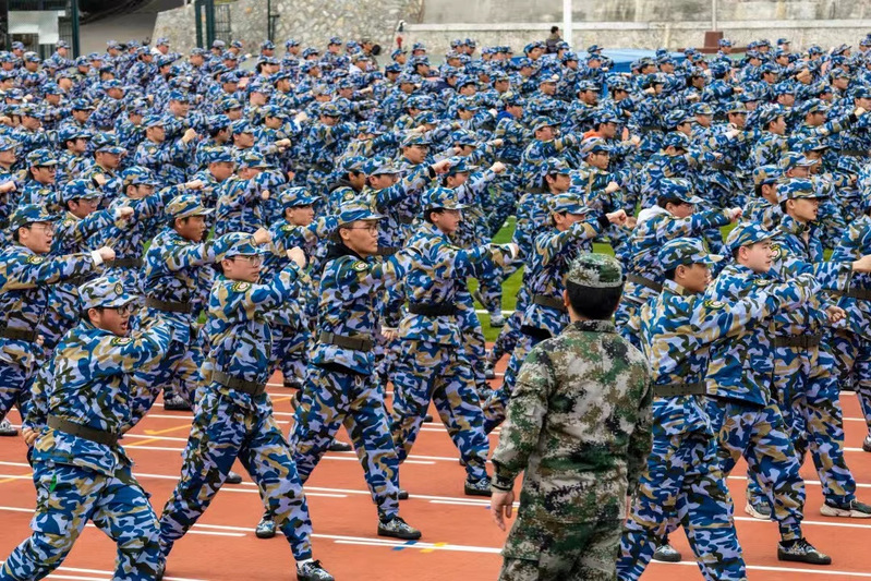 为丰富新生军训内容,呈现多样化的军训成果,此次军训除常规的队形队列训练外,同学们还学习了军体拳、手语操等军事技能。在军体拳方阵中,同学们身形矫健、拳脚有力,马步扎实稳健,口令自信洪亮。通过短短不到一周的训练,成效显著,队伍从松散生疏到整齐壮阔,动作娴熟,行云流水,一招一式展示着当代大学生的蓬勃朝气。