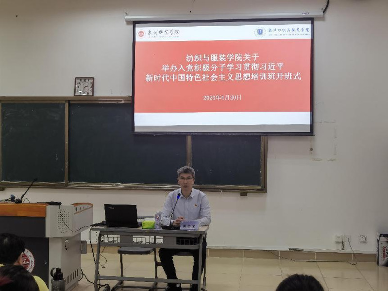 根据纺织与服装学院学习贯彻习近平新时代中国特色社会主义思想主题教育工作安排,4月20日下午,纺织与服装学院分党校在荣助梯教212举行入党积极分子学习贯彻习近平新时代中国特色社会主义思想培训班开班式暨第一次专题讲座。学院党委书记黄国波,南安市九都镇党委二级主任科员黄毅琳,本期培训班班主任廖春霖和全体学员参加。黄国波主持。