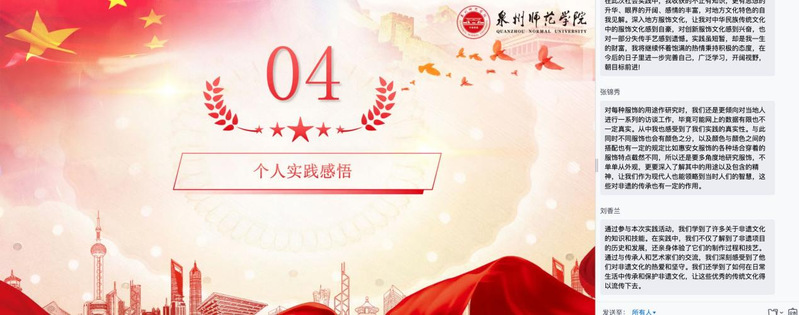 学院坚持用习近平新时代中国特色社会主义思想铸魂育人,组织此次福建“三大渔女”传统服饰文化调研暑期社会实践,立足“泉州:宋元中国的世界海洋商贸中心”世界文化遗产资源,发挥学院服装服饰专业特色,引导大学生深入实地了解国情、感知社情、观察民情,深刻理解和把握习近平总书记在文化传承发展座谈会上关于“第二个结合”的重要讲话精神,提高了队员们的社会责任感与使命感,增强了对优秀传统文化薪火相传、代代守护的决心,实现了思想洗礼、文化浸润、专业锻炼的良好成效。