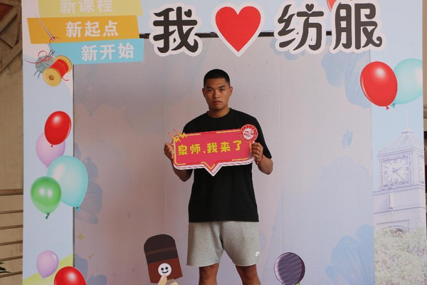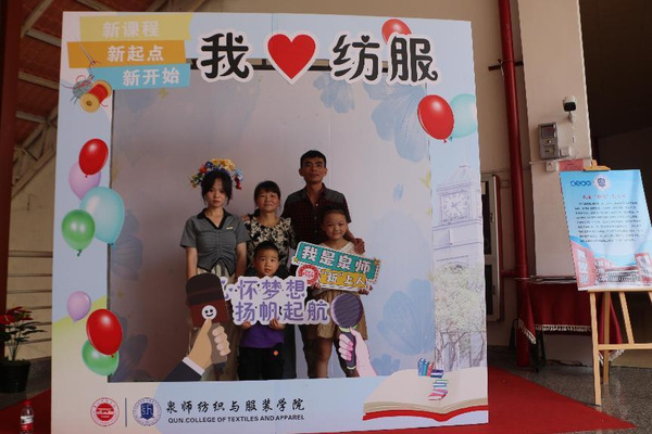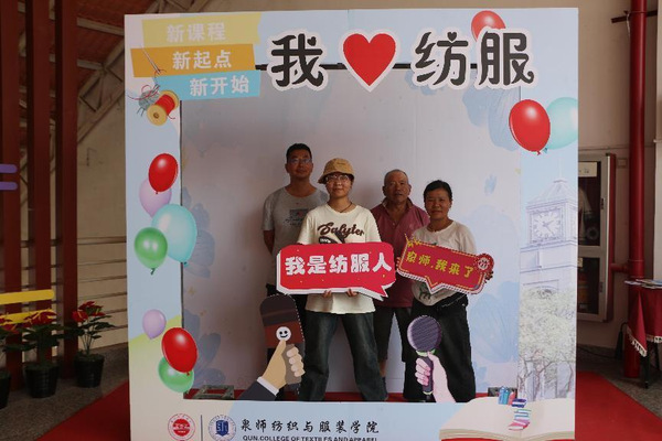 二是“我来‘纺服’打个卡”。照片是留住时光最好的方式,学院定制“我爱纺服”“心怀梦想,扬帆起航”“我是纺服人”等各式展板,妙趣横生,吸引新生及家长不断驻足拍照打卡。通过照片将青春的注脚在这一刻定格,希望同学们怀揣着赤诚之心,谱写大学生涯新篇章。