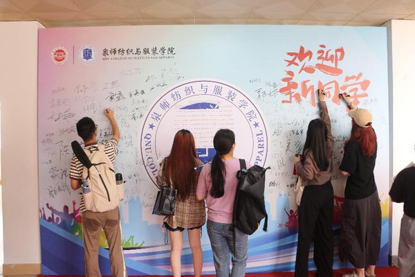 今年风格别具的“特色迎新”让全场迎新活动充满“思政味”“非遗味”“纺服味”。学院结合学科专业特色,对迎新现场进行了布置与装饰,开展意义深远、趣味横生的迎新活动,使新生们怦然“新”动。