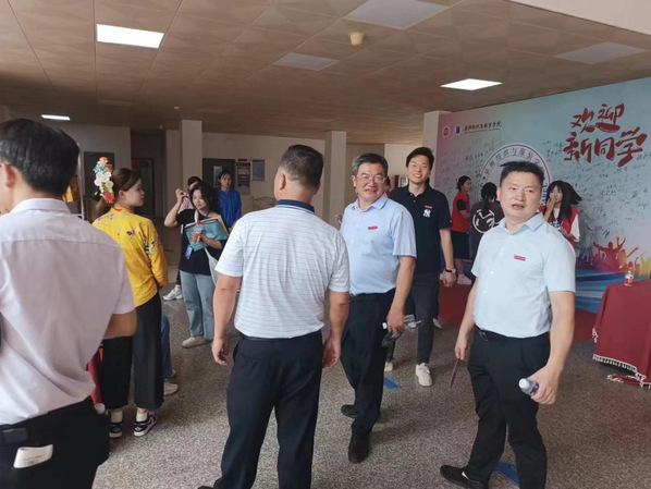 学校领导亲临现场指导学院迎新工作,慰问辛勤工作的老师和同学。