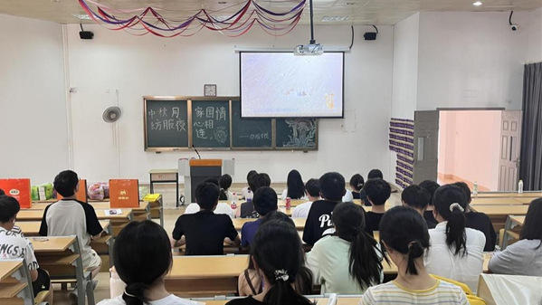 山河披锦绣,盛世写华章。为进一步弘扬爱国主义精神和中华优秀传统文化,丰富假期期间留校学生的精神文化生活,9月29日下午,纺织与服装学院于荣助梯教212开展中秋国庆系列活动,2023级全体留校新生及部分留校老生参加。
