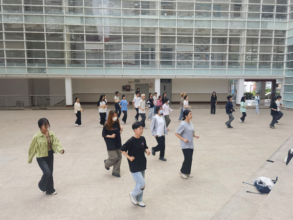 同学们每天中午在中山广场集合,在充分地热身过后,开始排舞训练。排练过程中,同学们热情浓厚、刻苦认真,小到肩膀如何摆动,大到舞蹈时如何变换队形,挥袖轻舞,踮脚弄步,精心打磨,没有丝毫懈怠,舞步由开始的凌乱变得整齐划一。同学之间还相互指正错误、互帮互助,提高动作准确度。在动感的音乐下,同学们挥洒汗水,有力的脚步声充满能量,以舒展自如的动作尽显青春的模样。同学们热情洋溢的笑脸、青春飞扬的身影成为了校园里一道亮丽的风景线。