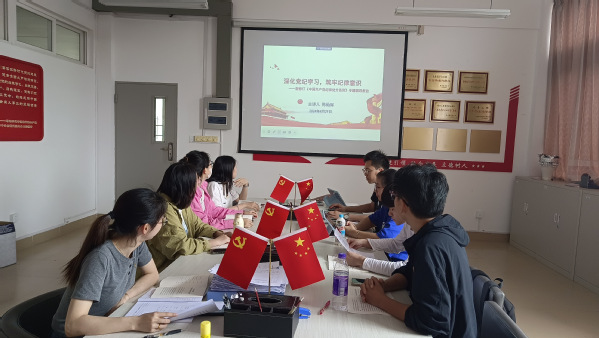 5月9日,本科生第一党支部书记李晓希围绕“守规矩 讲纪律”主题,分享了对《条例》的学习心得,并强调了坚守党性、规矩和纪律的重要性。她教育引导支部党员要准确把握新修订《条例》的内涵要义和实践要求,并鼓励大家要成为具有追求、正气、责任心和底线的共产党员。