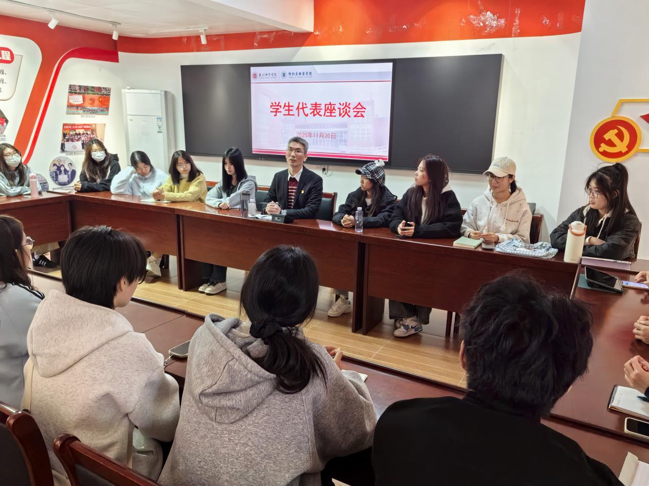 11月20日下午,纺织与服装学院在学生公寓C区一站式文明实践中心召开学生代表座谈会,共有30多名学生代表参加座谈。学院党委书记黄国波主持。