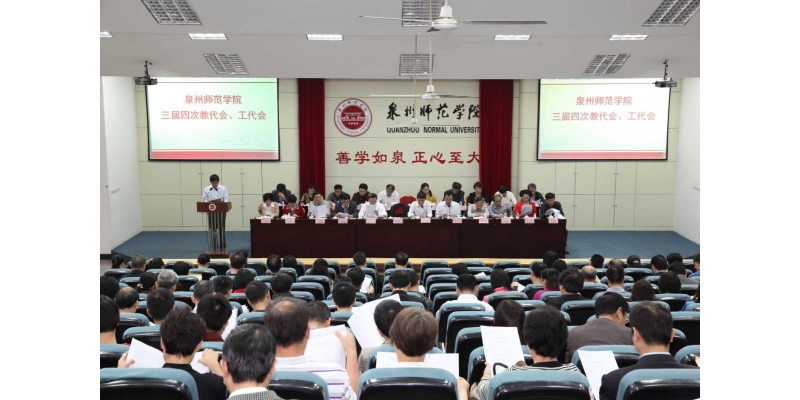 在会议分组讨论过程中,各个代表团的代表们在学校第二次党代会精神的鼓舞下,积极建言献策,就建设开放型有特色高水平的新型地方大学、早日复名泉州大学以及学校教育教学质量、学科专业发展、师资队伍建设、科研工作以及服务社会等问题提出意见和建议。会议最后通过三届四次教代会、工代会决议。