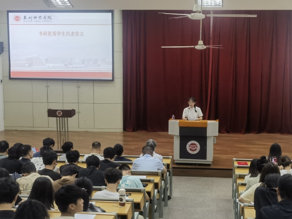 考研优秀学生代表和家长,对学校的培养、老师的帮助及同学的关怀表示感谢,全面分享个人的备考经验和家校协同育人的体会。
