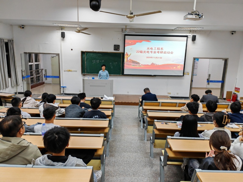 林蕙琼指出,光电工程系始终坚持立德树人根本任务,高度重视人才培养工作,从优化学涯指导入手,从而提升人才培养层次,积极鼓励学生考研逐梦。从新生入校开始,就积极为学生埋下考研深造提升能力的种子,拓展成长成才空间。林蕙琼表示,希望各位同学坚定目标、刻苦读书、认真备考,劳逸结合、提高效率。在实现个人梦想的同时,抓住时代机遇,树立远大志向,时刻保持昂扬斗志,在实现中华民族伟大复兴的征程中贡献青春力量。