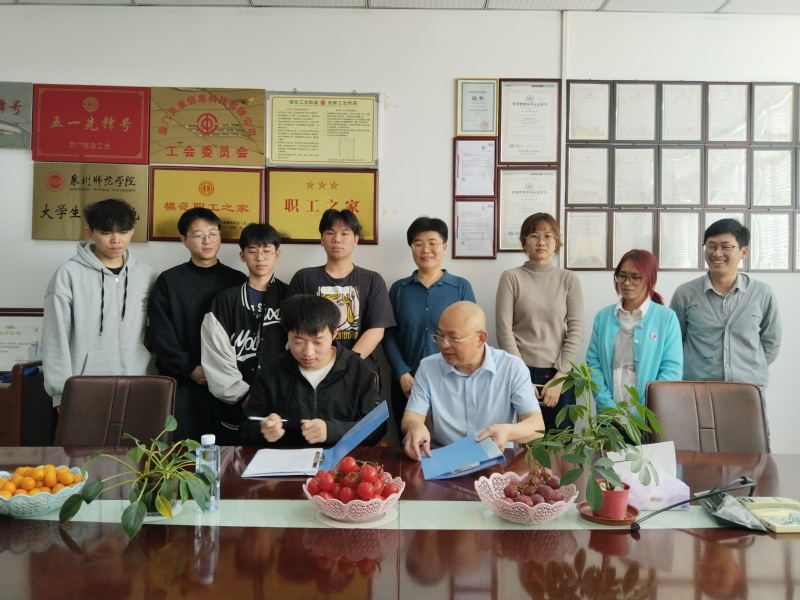 两家企业负责人对我校实习生的表现给予充分肯定,希望他们实习后能够留在企业发展,在贝莱信息的实习生蔡艺与企业现场签订就业协议。据悉,近年来贝莱信息每年接受我校光电专业实习生并接收毕业生就业,形成了良好的校企合作机制。厦门瑞之路是第一次接收光电专业实习生,后续瑞之路将与学校就PC眼镜片模具研发等方面深入合作。