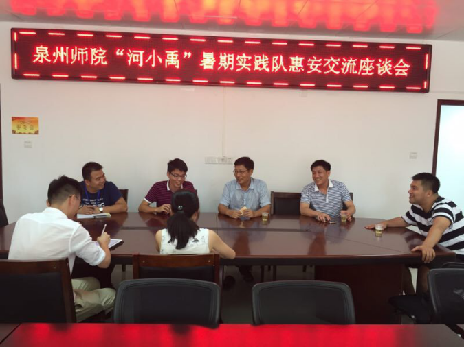 2017年7月13日,我院“河小禹”志愿实践队指导老师蔡大牛携学生代表前往共青团惠安县委员会进行前期工作洽谈,与惠安团县委黄高山书记、惠安水利局林庆福局长等相关负责人就“河小禹”行动的具体事宜进行交流和商讨,确定具体出行时间和路线安排,并计划由我们的志愿者们在惠安县青少年宫为小朋友们上一节关于河流保护的课程。