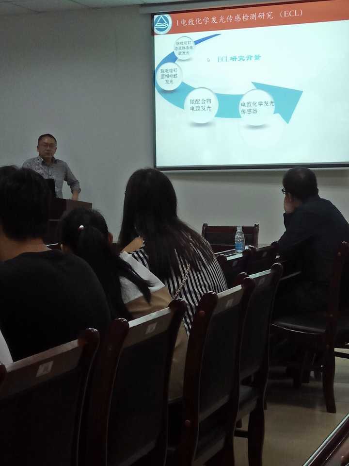 宋启军教授生动地介绍了电致化学发光传感的检测研究,结合自己的研究成果重点介绍了化学发光与电化学发光的区别与联系,并提出纳米材料选择性多,在各种方面都可以应用。