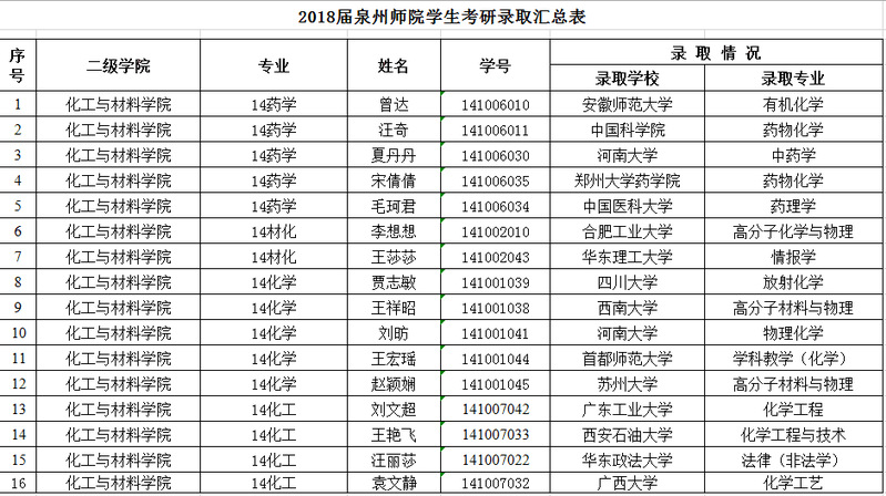 - 泉州师院化工学院2020年本科生考研情况汇总...2020-09-10