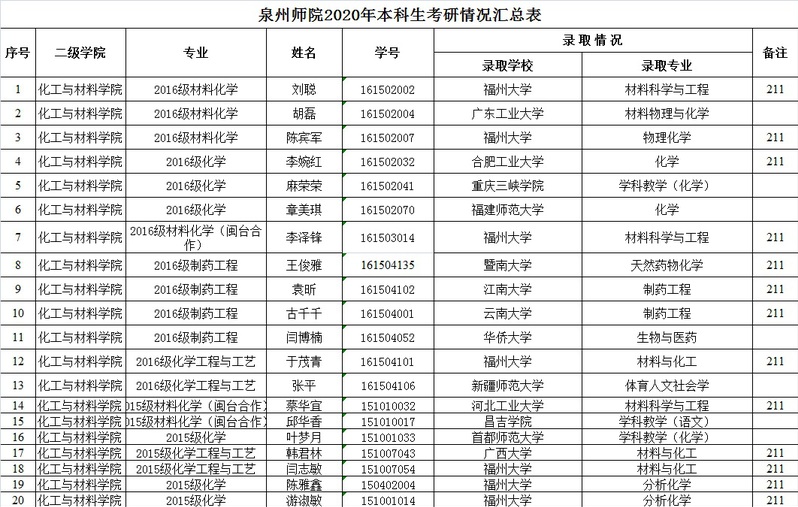 - 泉州师院化工学院2020年本科生考研情况汇总...2020-09-10