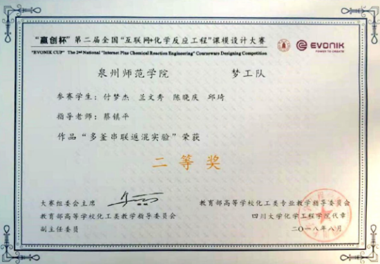 近年来,专业积极组织学生参加各级学科竞赛,已获得全国大学生化工HSE创新设计大赛一等奖,“互联网+化学反应工程”课程设计大赛二等奖等国家级奖项,并已连续10年获得全国大学生化工设计大赛国家级奖项。毕业生就业率均在96%以上,进入央企或行业龙头企业就职30余人。部分学生考取复旦大学、天津大学、北京化工大学、福州大学等高校研究生。