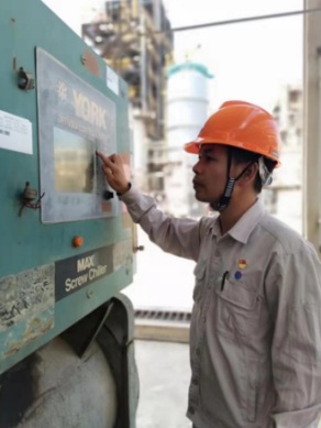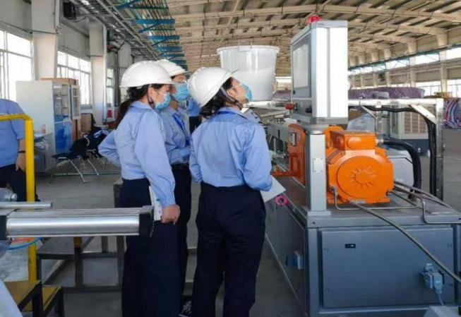 学生与企业指导教师交流 学生在中化实习