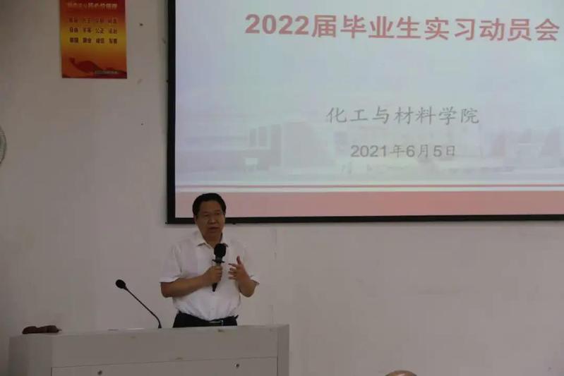 6月5日下午,化工与材料学院在理工319教室召开2022届毕业生实习动员会。学院院长袁俊生、党委副书记郑少君、副院长卓东贤出席会议。