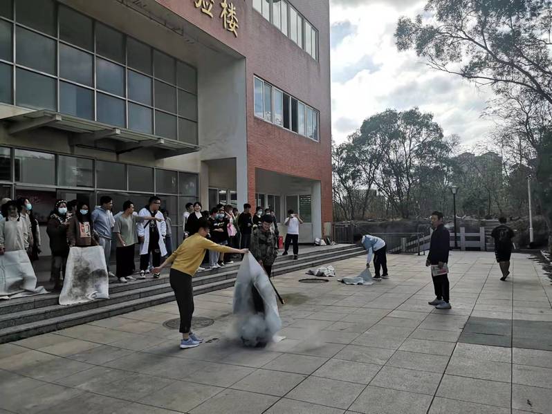 为进一步加强消防安全工作,提高全院师生正确使用消防器材、应对火灾突发状况的处理能力。11月3日下午,化工与材料学院联合实验室与设备管理处、保卫处在昭情实验楼外开展了消防器材使用演练活动。
