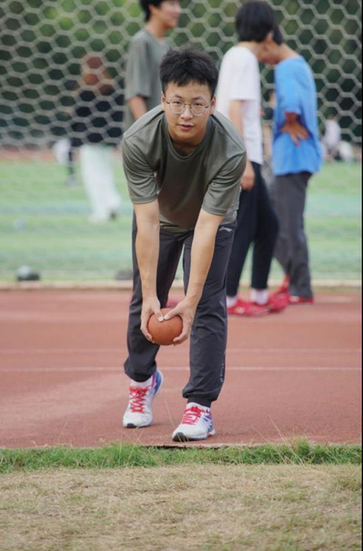 要想在实心球这项运动上取得好的成绩,既需要运动员拥有强大的力量,也需要运动员对实心球的出手速度,角度和高度有精准的把握。采访中了解到,苏航同学每天早上都会到操场进行实心球训练,无数次的举球、下腰、投掷、捡球,挥洒的汗水见证着他的努力。