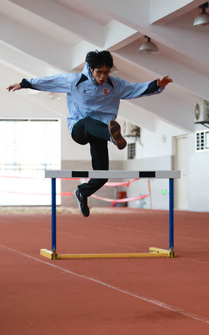 跨栏队:青春在赛道上绽放光彩,激情在每一次跨越中迸发。面对一道道障碍,林启荣同学从不畏惧挑战,总是以饱满的热情和坚定的信念跨越每一个栏杆。他在不断冲刺中展示了强大的意志力和坚韧不拔的精神,展现了运动员的风采。林启荣坚定地表示:“跨栏是我的挚爱,为学院争光是我的责任,我将继续不懈努力,勇攀高峰。”训练场上,他矫健的身姿和坚定的步伐,每一次有力的起跨,都是他不断追求卓越、迈向更高目标的见证。