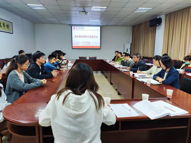 11 月 21 日下午,化工与材料学院于邱季端实验楼 449 会议室举行师生教学信息交流座谈会。学院分管教学副院长谢晓兰教授、教学督导员、教学科研办与辅导员代表以及 2022~2024 级教学信息员等参加此次座谈会。会议由督导组组长黄妙龄教授主持。