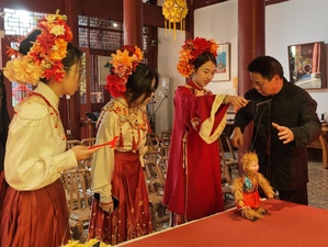 实践队结合资料并开展实地考察学习。在考察过程中,队员们体验学习了泉州花灯精巧绝伦的制作工艺,切身感受了蕴含泉州特色海洋文化的蟳蜅女簪花,近距离欣赏了有中国音乐史上“活化石”之称的南音和凝结精湛技艺的木偶戏。这些实地体验都让队员们对泉州的非遗文化有了更加直观的感受,也对之后的实践科普活动提供了宝贵的参考。