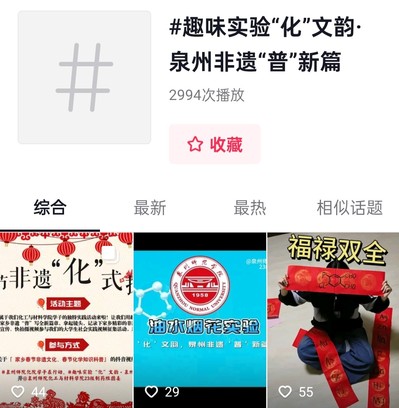 此次实践活动获得《东南早报》的关注和报道,成功借助媒体力量进一步提升了活动影响力。线上,实践队精心制作的化学与春节非遗科普视频,凭借着剪辑、趣味解说以及创意内容在抖音平台#泉州师院化院学子在行动# #趣味实验“化”文韵·泉州非遗“普”新篇#话题栏目中引发广泛关注。