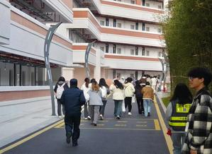 在准备阶段,我院根据每个宿舍区的居住特点和地理位置,通过实地考察合理设计学生的逃生路线,并制作成电子逃生路线图,通知到每一位参加逃生演练的同学。在活动过程中,我院辅导员及相关部门负责人在各楼层积极维持秩序。待哨声响起,同学们立即按照火灾逃生路线规范行动起来。大家纷纷用衣物或手捂住口鼻,身姿下弓,沿着事先规划好的逃生路线,迅速向规定安全区撤离。