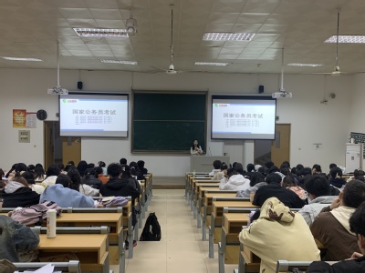 最后,老师对考研考公类考试备考技巧进行了现场指导,内容涵盖了报考时间节点、考试内容、复试经验等方面。随后,针对学生现场的问题反馈,与同学们进行了交流探讨。