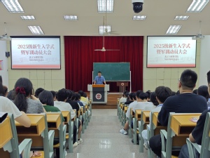 副院长谢晓兰详细介绍了学院的教学特色和学业发展规划,对课程体系设置、学分制度要求、实践教学安排以及学业支持资源等方面进行了讲解。她鼓励同学们尽快适应大学学习节奏,并强调学院将为大家提供丰富的学习资源和支持服务,包括开放实验室、科研项目参与机会、学术竞赛平台等。她希望同学们主动探索专业知识,积极参与科研实践,培养创新思维和实践能力,为未来深造和就业奠定坚实基础。