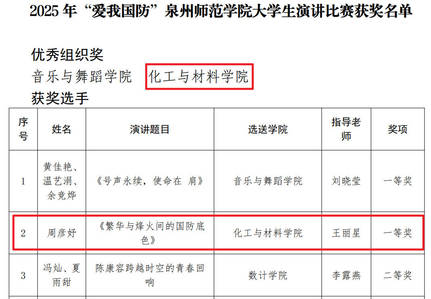 - 喜讯|化工与材料学院在2025年泉州...
