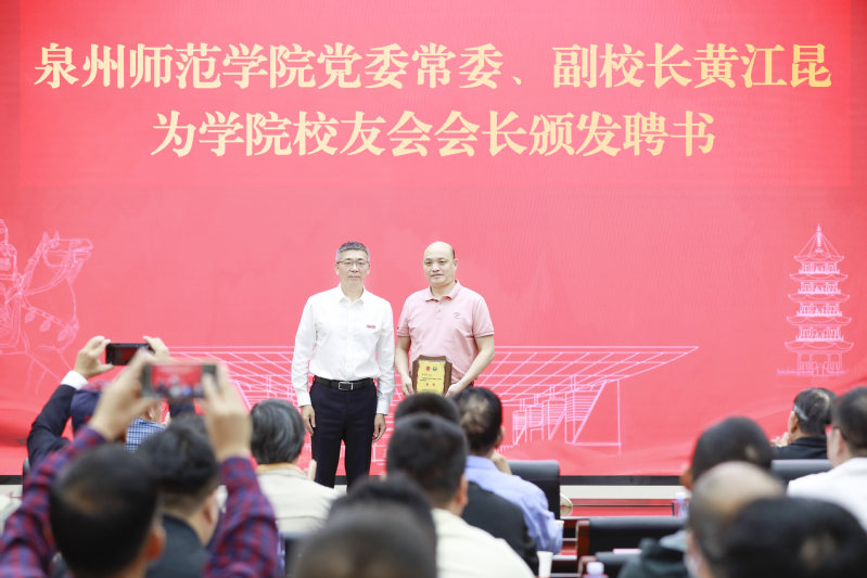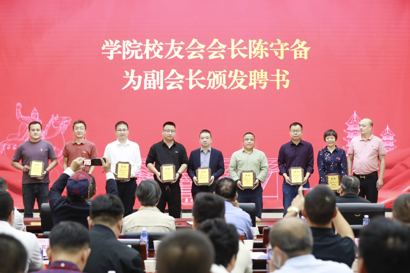 黄江昆向校友会会长陈守备颁发聘书。