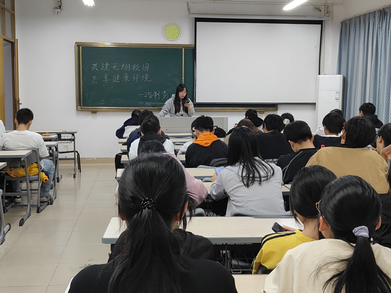 11月23日,我院各班级在理工楼教室开展禁烟主题班会,班会上辅导员带领同学们用科学辨危害、用行动守无烟约定。