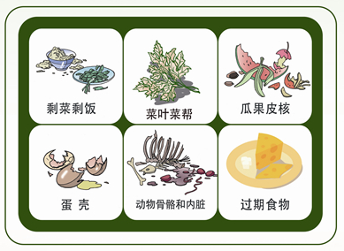 1.主要品种。包括:蔬菜瓜果垃圾、腐肉、骨骼内脏、茶叶渣、残枝落叶等,学校里的易腐垃圾主要有食堂、小餐饮店等产生的剩菜剩饭、蛋壳、畜禽产品内脏等易腐垃圾。