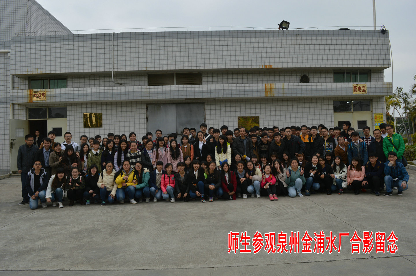在泉州金浦水厂,庄云鹏总经理和工程技术人员分别以水厂概况讲解,水源区、取水口、自来水生产线实地参观,工程师现场答疑等方式,为学生详细介绍了自来水生产过程中的技术应用。同学们参观了该公司生产车间,切身感受了公司的管理方式和企业文化。